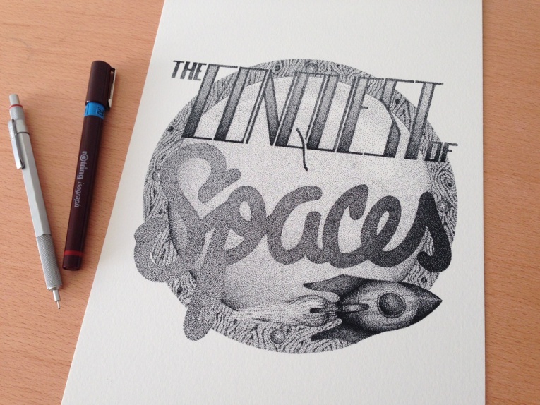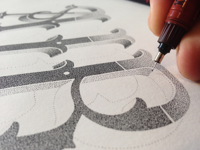 Xavier Casalta is a talented graphic designer from France, who is passionated by hand lettering. He is using an Isograph 0.10mm and experimenting in different styles with a stippling technique. Check out his online shop too.